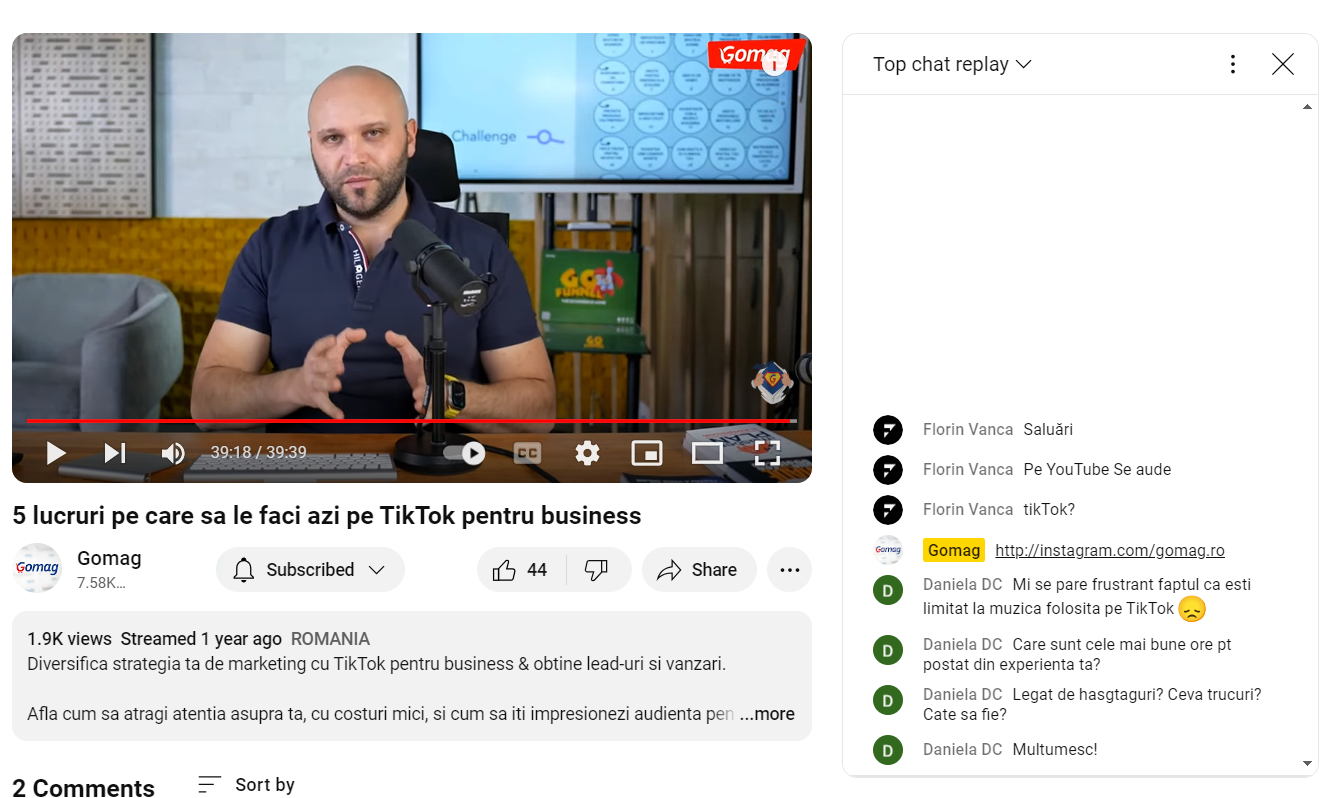 De asemenea, sectiunea de comentarii e o zona exceptionala daca vrei sa afli feedback si idei de continut nou, direct de la urmaritori.